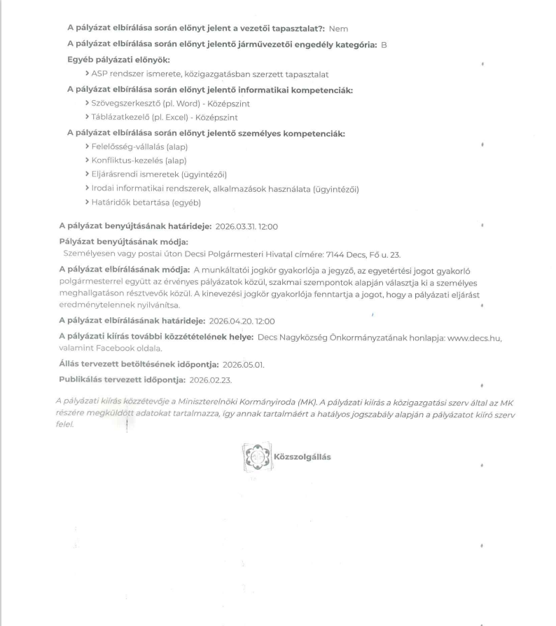 ÁLTALÁNOS KÖZZÉTÉTELI LISTA
