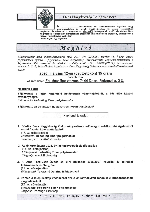 TELEPÜLÉS RENDEZÉSI ESZKÖZÖK