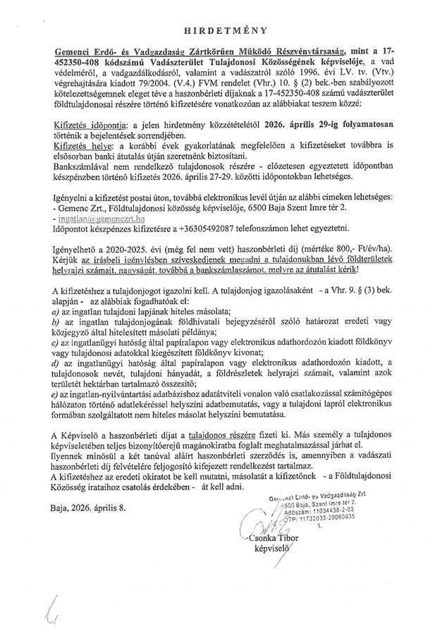 ÁLTALÁNOS KÖZZÉTÉTELI LISTA