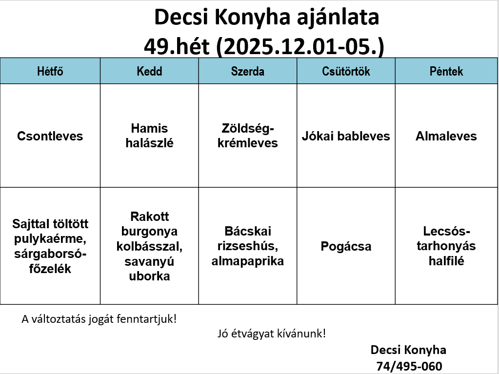 Konyha étlap