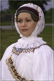 A női fejviselet egy másik jellegzetes darabja a bíbor nevű kendő, melyet a menyecskék az első (egyetlen) gyermekük születéséig viselték a főkötőt lefedve, egy díszes tűvel megtűzve.